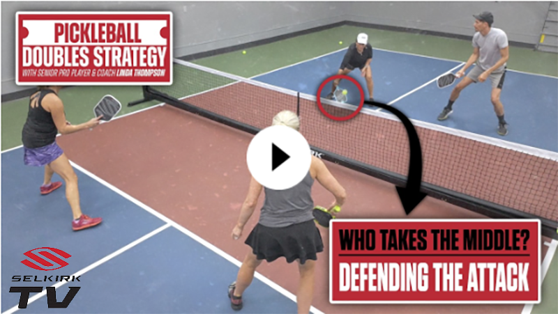 In this episode, pickleball coach Linda Thompson will teach you to defend the attack down the middle, and answers the question: Who takes the middle?