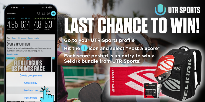 Did you know you could self-post individual matches on your UTR Sports Profile? You can quickly gain an understanding of your level the more scores you post. These matches will not count towards your “Verified” rating, but will still give you a deeper understanding of your level. THREE players will be selected at random to win a Selkirk bundle (valued up to $250).