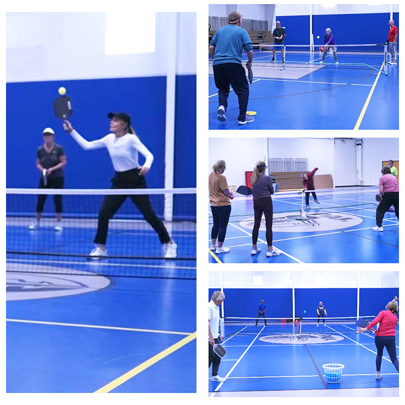 A recent session worked through the first four shots of pickleball — serve, return, drop shot, and dink — with court coordinators and a pickleball machine available to help guide the drills. Players can sign up with a partner or be paired with one, making it easy for anyone to join.